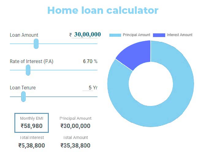 The below image will give you a clear understanding of the parameters the home loan calculator considers while calculating your home loan EMI.